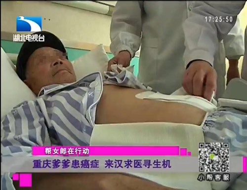 湖北电视台综合频道记者了解到武汉博仕中医肛肠医院此次接收的这位病人是一位74岁的老爹爹,是土生土长的重庆人,特远赴千里来找秦国才教授治病。